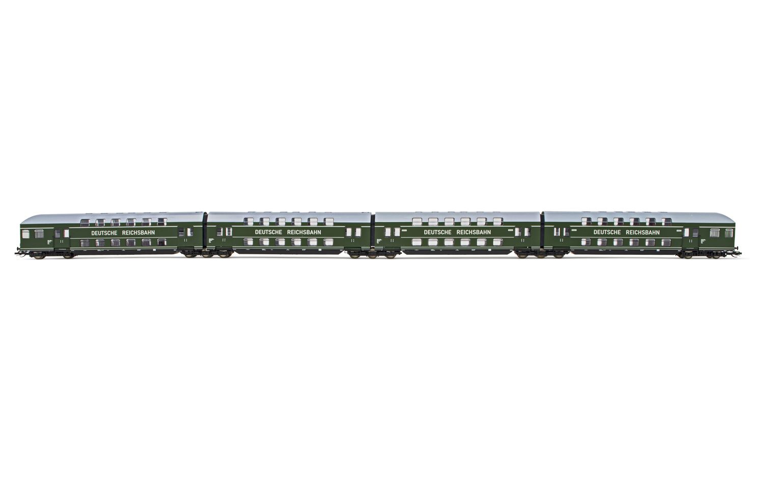4-tlg. Doppelstockeinheit der DR, in dunkelgrüner Lackierung mit grauem Dach