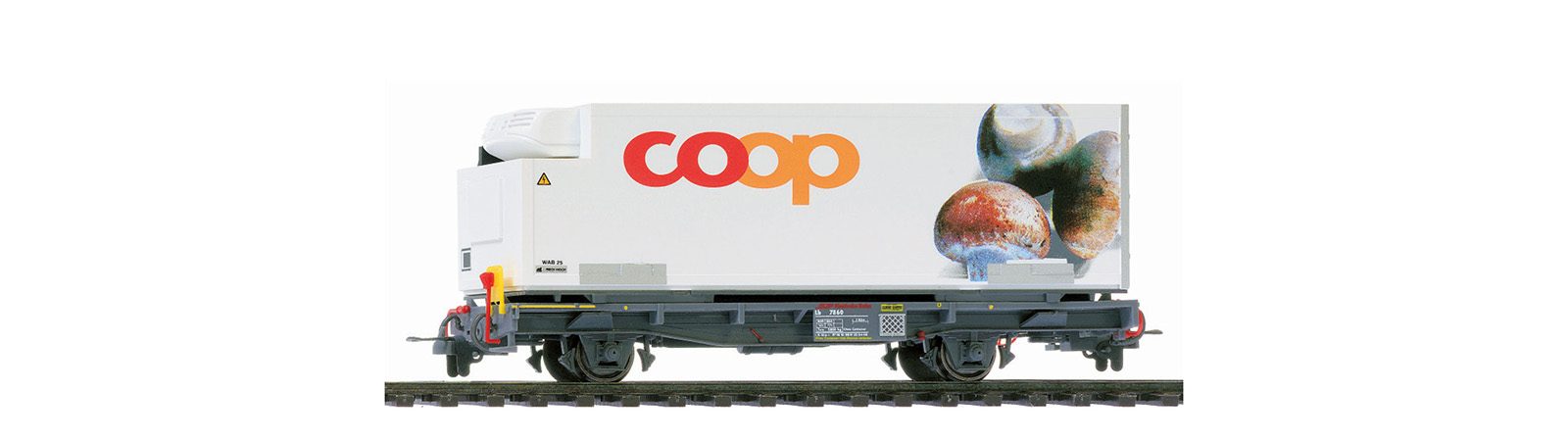 RhB Lb-v 7860 Tragwagen mit Coop-Container "Champignons"