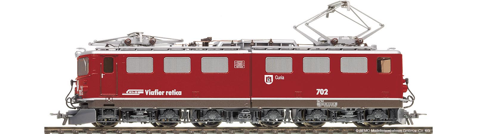 Epoche IV - VIDie zuletzt vor allem zur Bespannung von Güterzügen eingesetzten Universalloks Ge 6/6 II 701-707 werden mit der zunehmenden Inbetriebnahme von „Capricorn“-Flügelzügen bald ihr Einsatzgebiet im Güterverkehr an freiwerdende jüngere Ge 4/4 II verlieren. BEMO legt zwei bisher in diesem Zustand noch nie angebotene Maschinen auf: einerseits die Lok 701 "Raetia" im typischen Zustand der 80er Jahre in roter Farbe mit dunkelbraunem Rahmen mit runden Scheinwerfern und Scherenstromabnehmer; andererseits die 703 im aktuellen Zustand in neurot/grauer Lackierung mit Rechteckscheinwerfern und Einholmstromabnehmern.