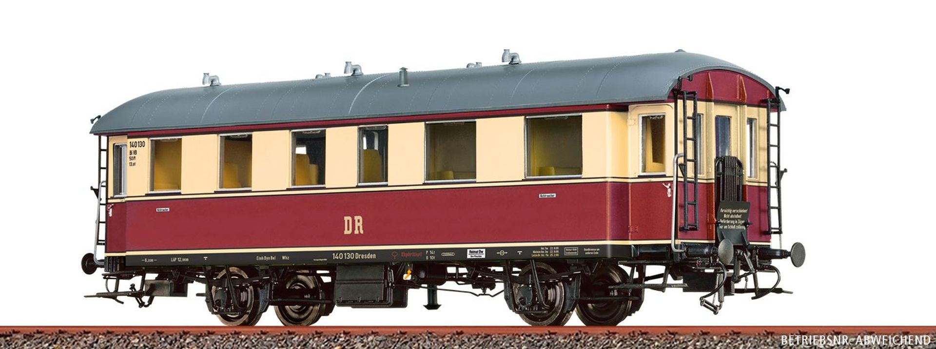Startseite » Hersteller » BRAWA » BRAWA Personenwagen H0 » BRAWA 45549 - Einheits-Nebenbahnwagen Bi der DR, Ep. III
