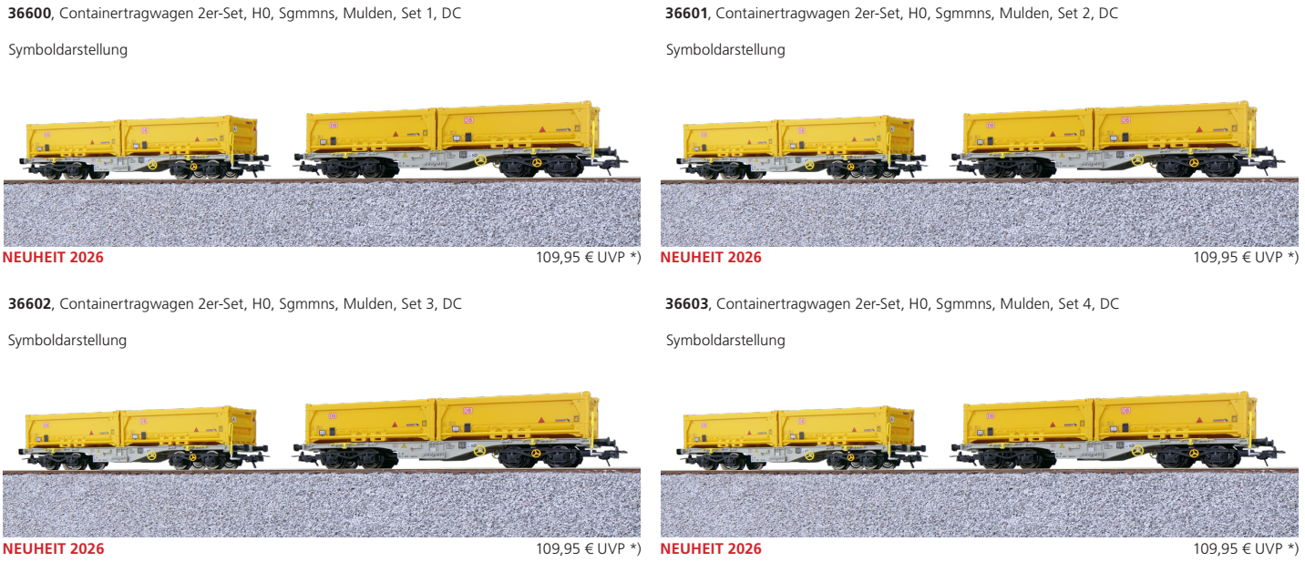 • Beladen entweder mit aufwändig bedruckten, sehr detaillierten Mulden oder mit jeweils zwei 40 Fuß-Containern.