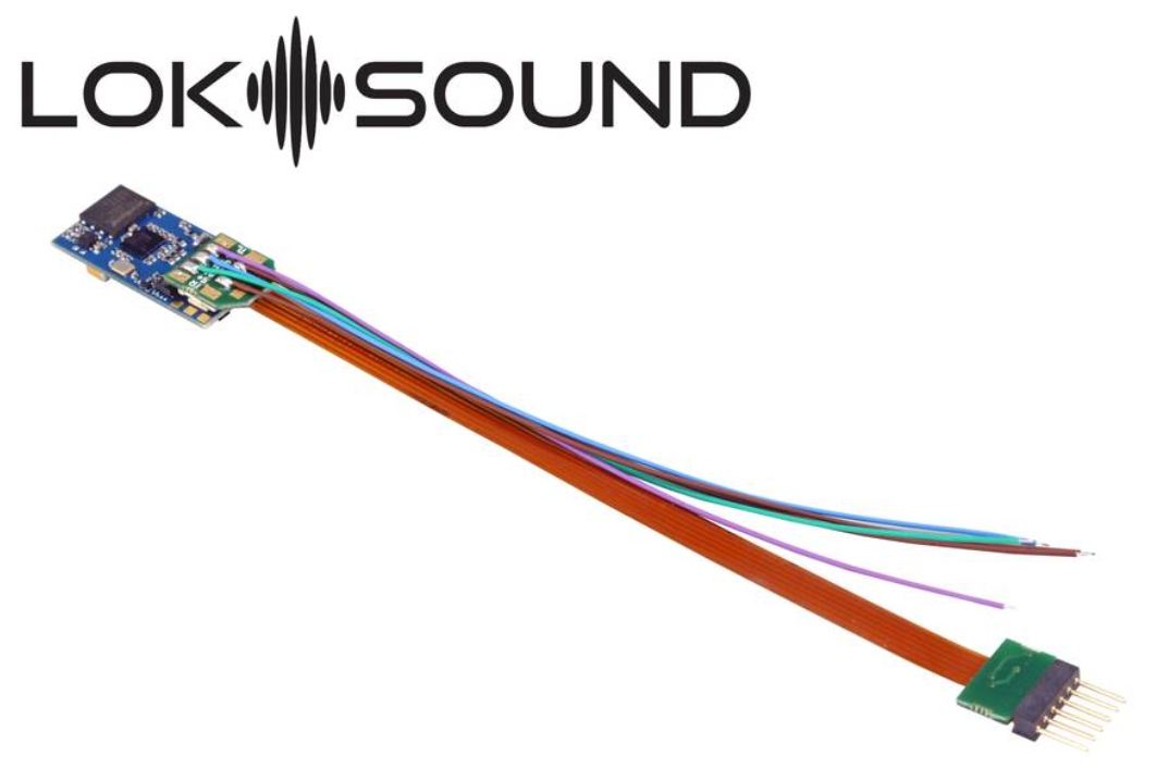 Der LokSound 5 micro ist ein „kleines Wunder“: Mit nur 21mmx10mm Grundfläche ist er einer der kleinsten LokSound Decoder, die wir je gebaut haben. Somit sollte er in alle Fahrzeuge der Nenngrößen N und TT, aber auch in kleinen H0 Fahrzeugen seinen Einsatz finden. LokSound 5 micro Decoder haben stets eine Next18 Schnittstelle und werden mit Adaptersteckern für allen gängigen Schnittstellen angeboten. Ein 11x15mm großer „Zuckerwürfel“-Lautsprecher nebst Schallkapsel-Bausatz ist ebenfalls immer dabei.