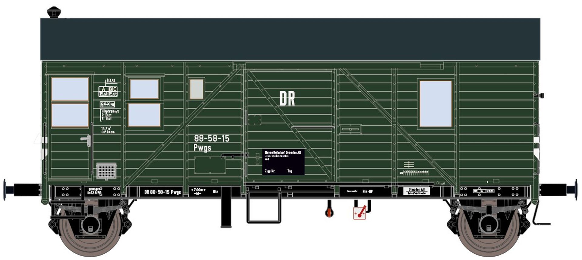 Packwagen Pwgs44 Bremen der DR, mit ABC Raster grün