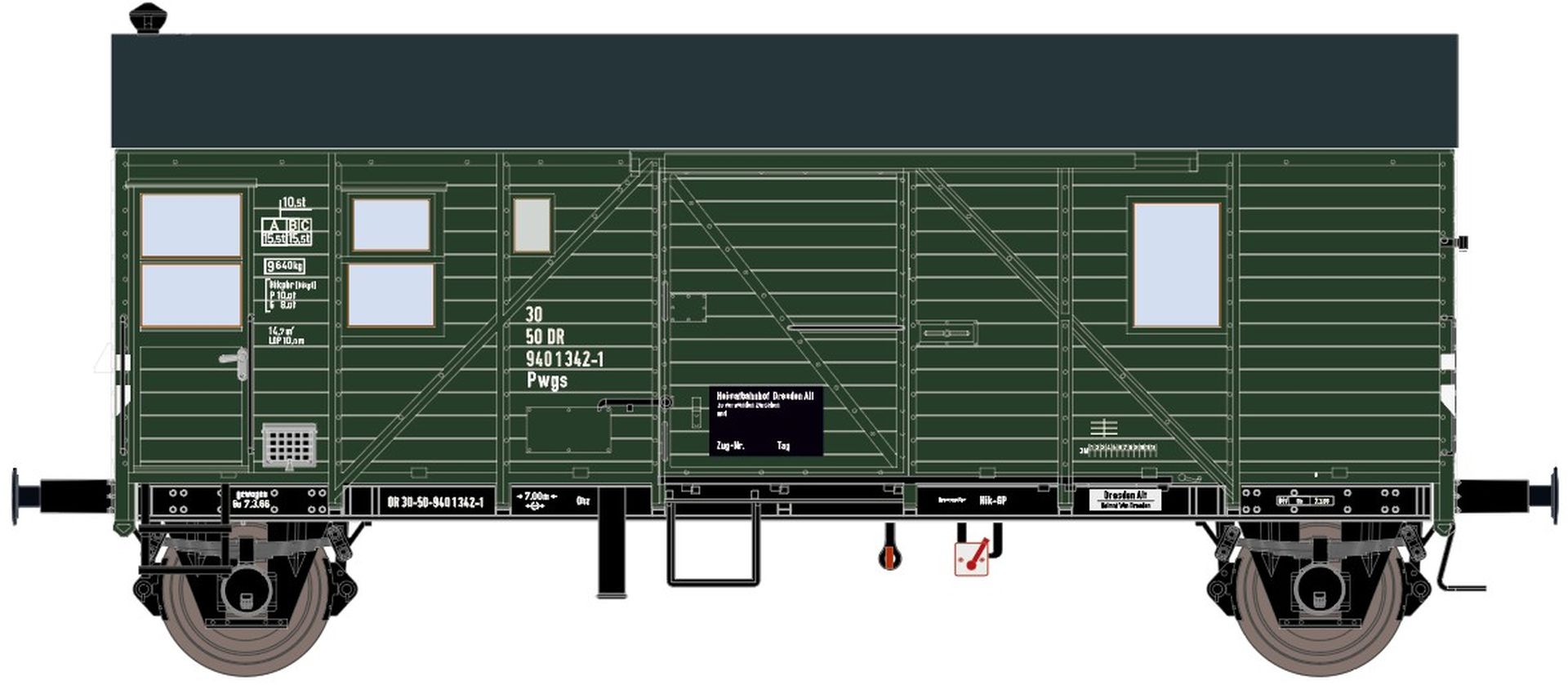 Exact-train EX23648 - Packwagen Pwgs44 Bremen der DR, grün, Ep. III