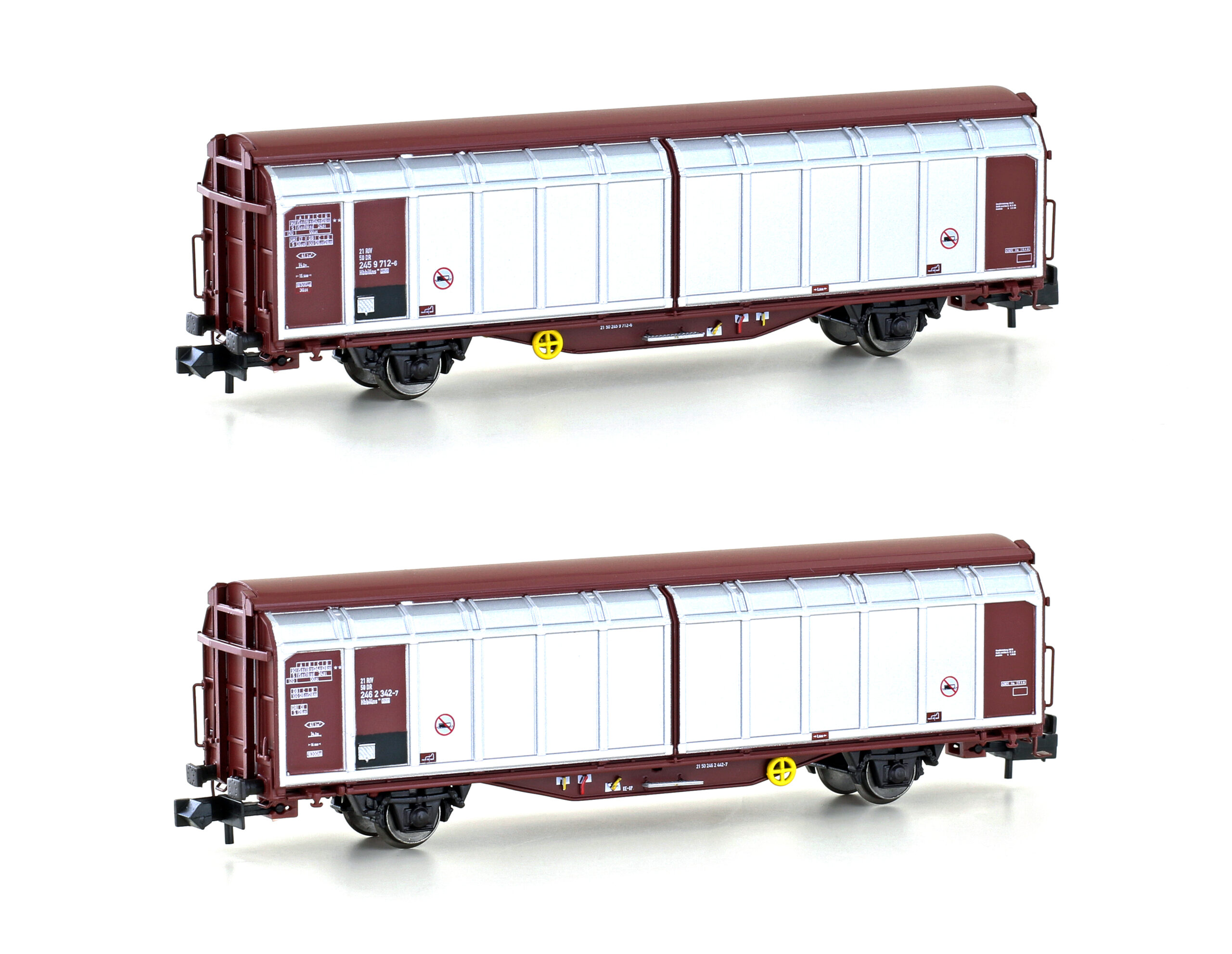Startseite » Hersteller » Hobbytrain » Hobbytrain Spur N » Hobbytrain H24653 - 2er Set Schiebewandwagen Hbbillns der DR, Ep. IV-V