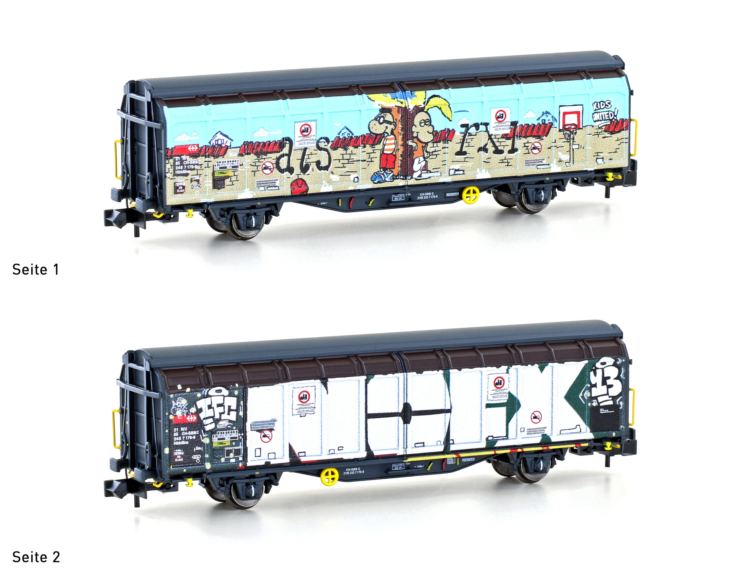 Startseite » Hersteller » Hobbytrain » Hobbytrain Spur N » Hobbytrain H24663 - Schiebewandwagen Hbbillns der SBB, Graffiti-Serie (3), Ep. VI