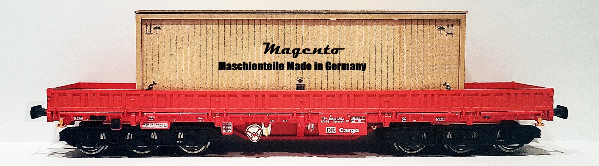 Schwerlastwagen Samms-u 454 der DBAG, mit Holzkiste 'Magento'