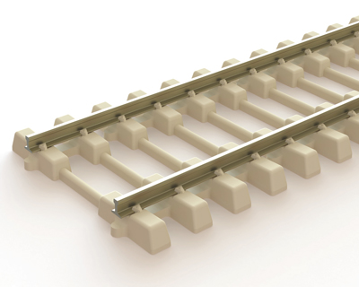 - 914 mm lang, H0 Code 75-Neusilber-Profil auf Kunststoff-Schwellenrost