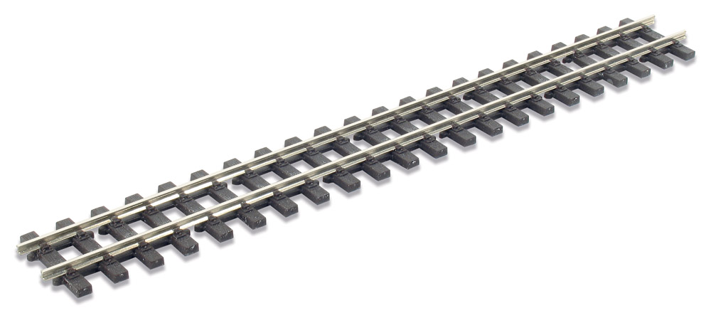 - 914 mm lang, H0e Code 80-Neusilber-Profil auf Kunststoff-Schwellenrost