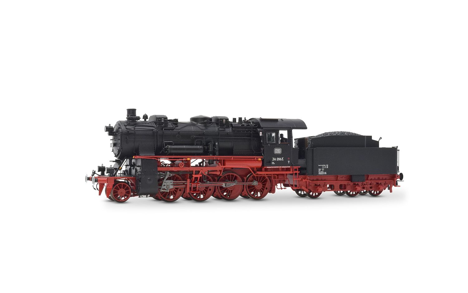 Dampflokomotive BR 56.20 der DB, dreidomiger Kessel, in schwarz/roter Lackierung
