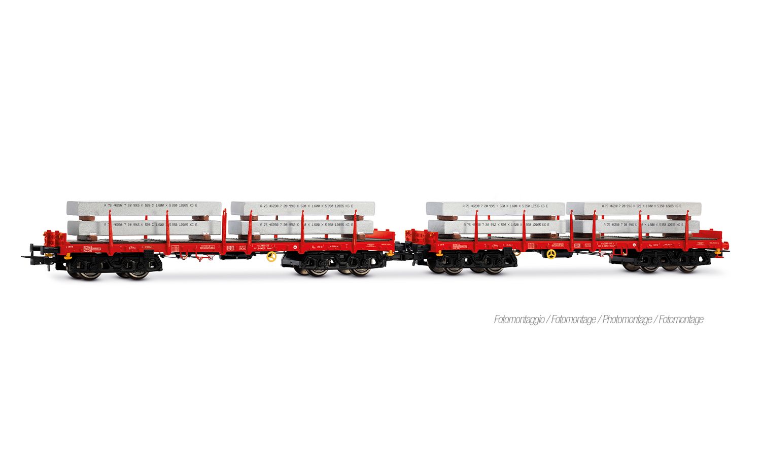 2-tlg. Set Rungenwagen der Bauart Rmms der DB, beladen mit Aluminiumblöcken