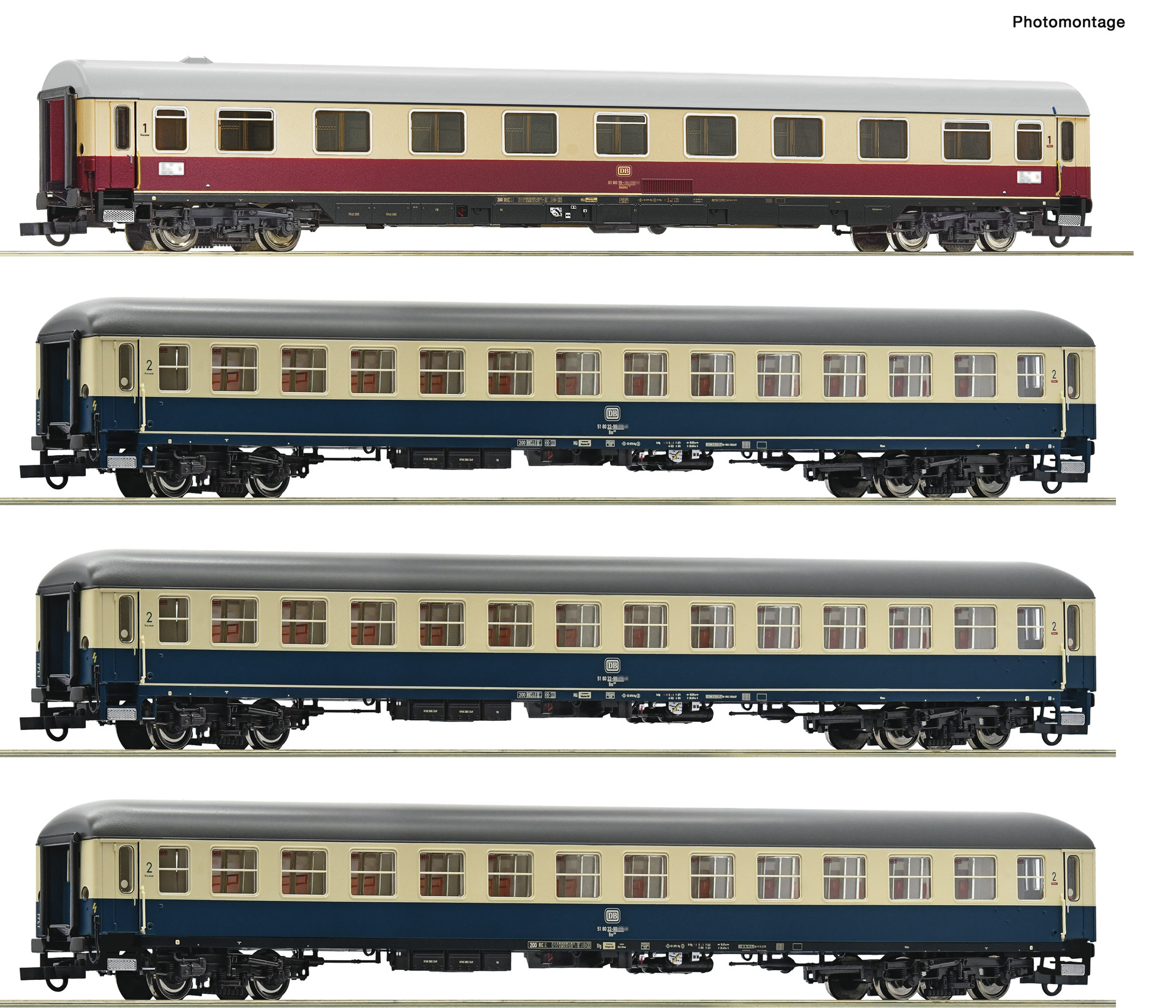 Wagenset mit vier Schnellzugwagen für den IC 511 „Chiemgau“ der Deutschen Bundesbahn