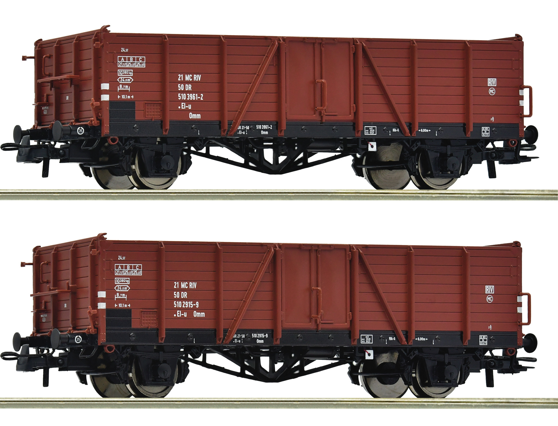 Wagenset mit zwei offenen Güterwagen, Gattung El-u „Villach“, der Deutschen Reichsbahn