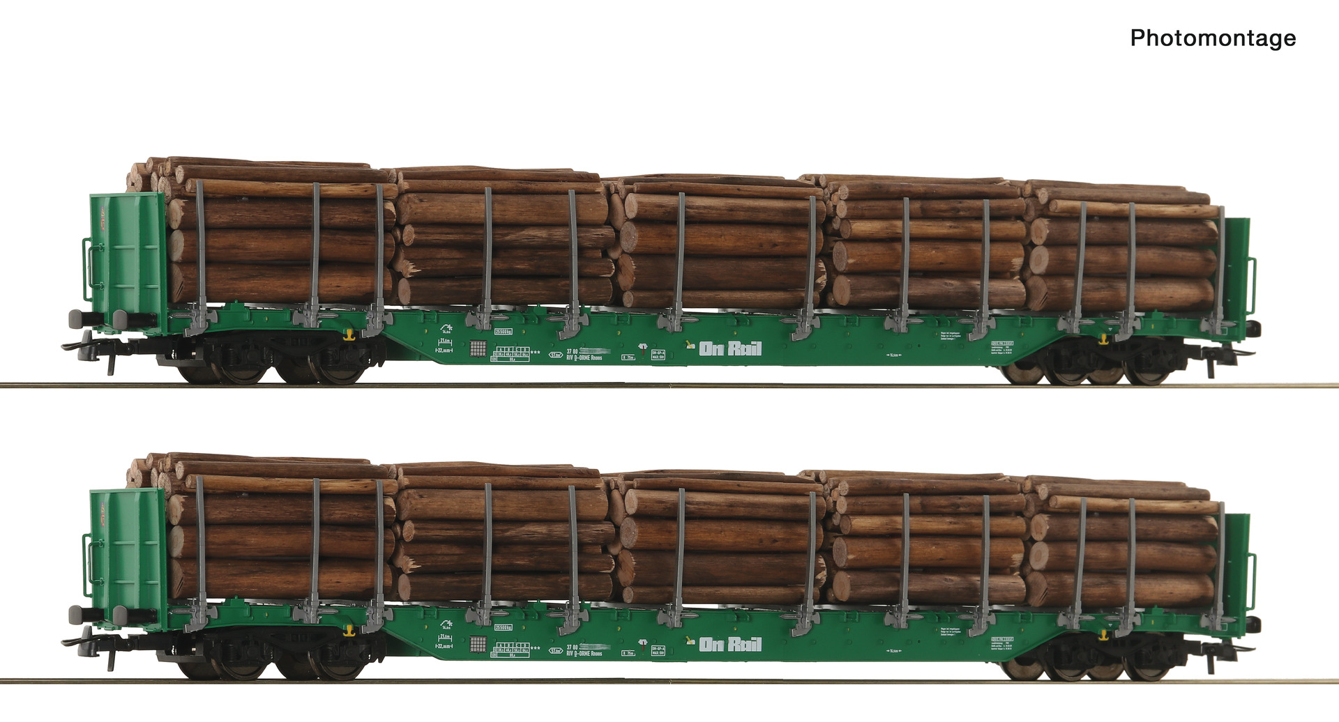 Wagenset mit zwei 4-achsigen Rungenwagen, Gattung Rnoos, der OnRail GmbH