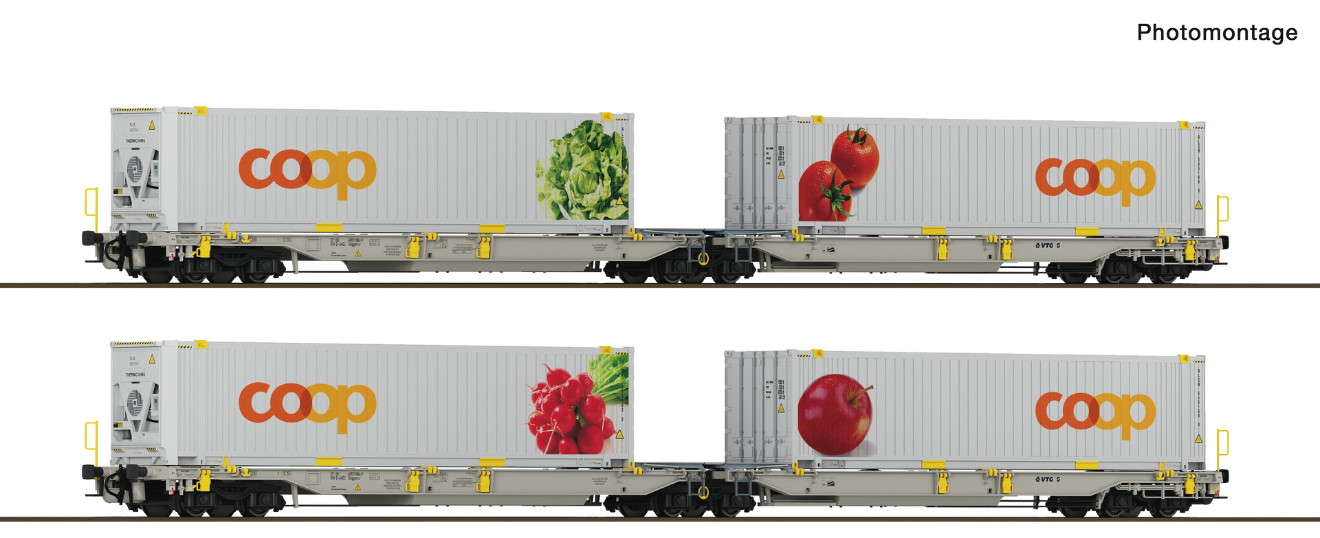 Die modernen T2000-Bahnwagen von railCare, ausgestattet mit zwei fest installierten 45-Fuß-Kühlcontainern, ersetzen die zuvor temporär eingesetzten Schiebewandwagen von SBB Cargo. Sie sind speziell für den Be- und Entladebetrieb an Bahnrampen ausgelegt und bieten dank ihrer durchdachten Konstruktion eine hohe Praxistauglichkeit. Eine dreiteilige Verladeplattform gleicht den Höhenunterschied zur Rampe aus und ermöglicht so maximale Flexibilität beim Be- und Entladen mit Flurförderfahrzeugen. Mit ihrer auffälligen Coop-Beschriftung prägen die Wagen mittlerweile das Bild des schweizerischen Güterverkehrs und sind fast täglich im ganzen Land unterwegs.