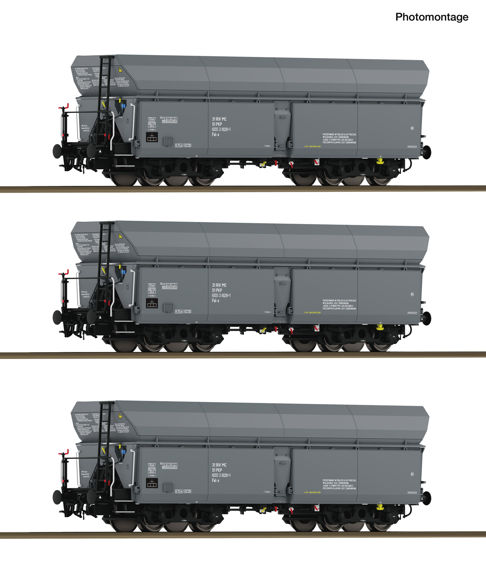 Wagenset mit drei Selbstentladewagen, Gattung Wap, der Polnischen Staatsbahnen