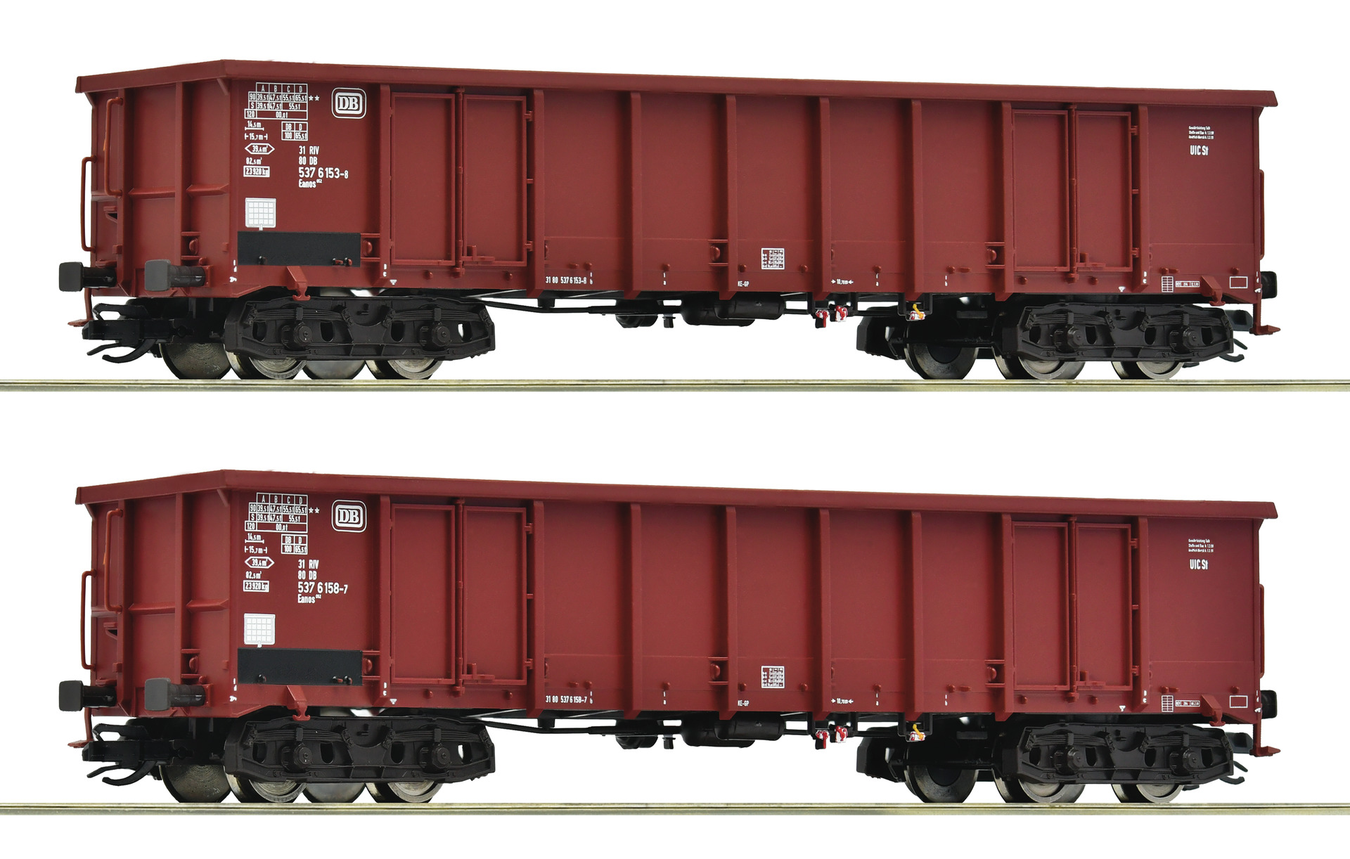 Wagenset mit zwei 4-achsigen offenen Güterwagen, Gattung Eanos, der Deutschen Bundesbahn