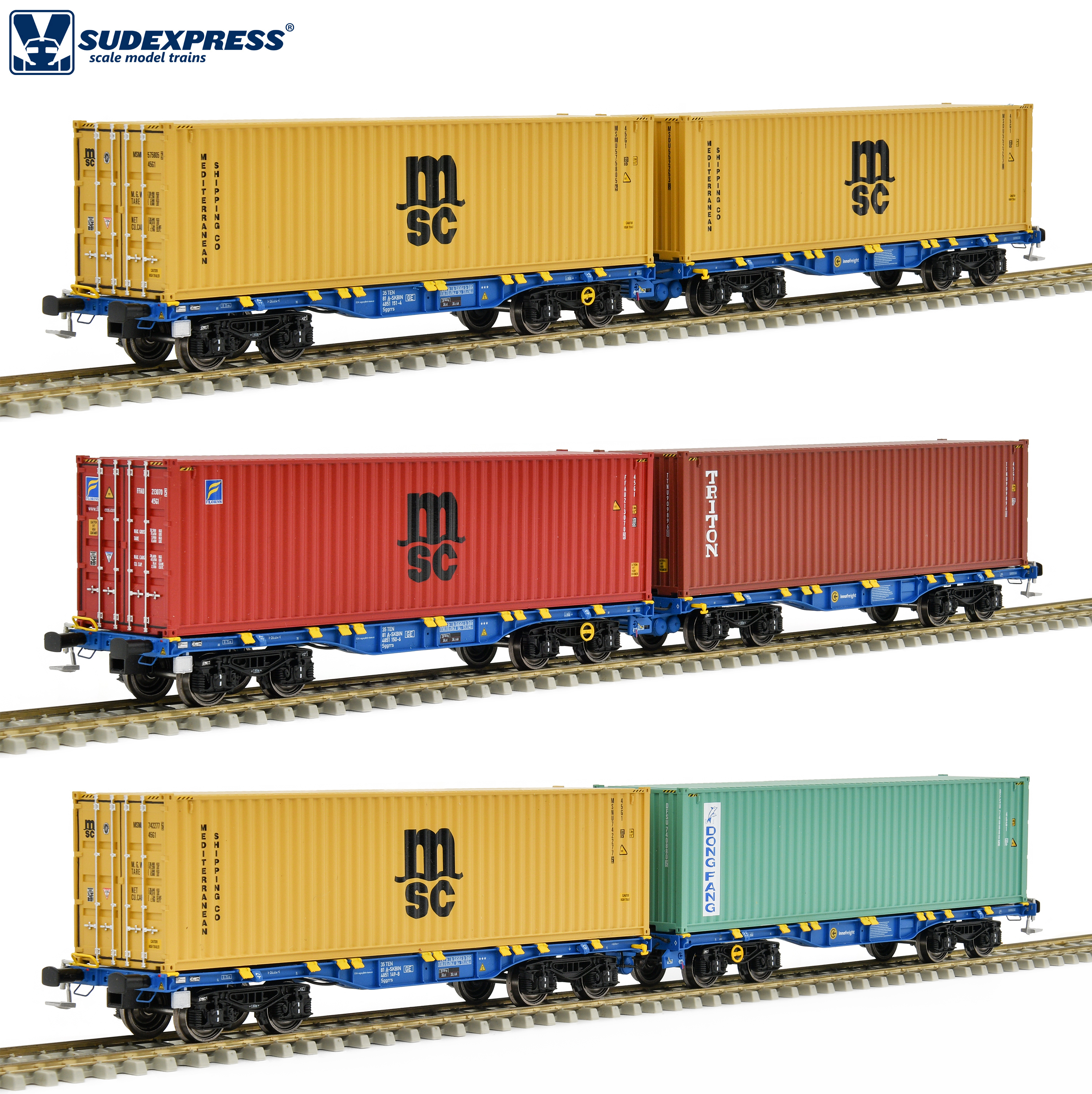 Startseite » Hersteller » Sudexpress » Sudexpress Güterwagen H0 » Sudexpress S854005 - 3er Set Containerwagen Sggrrs 80 der innofright, "MSC", Ep. VI