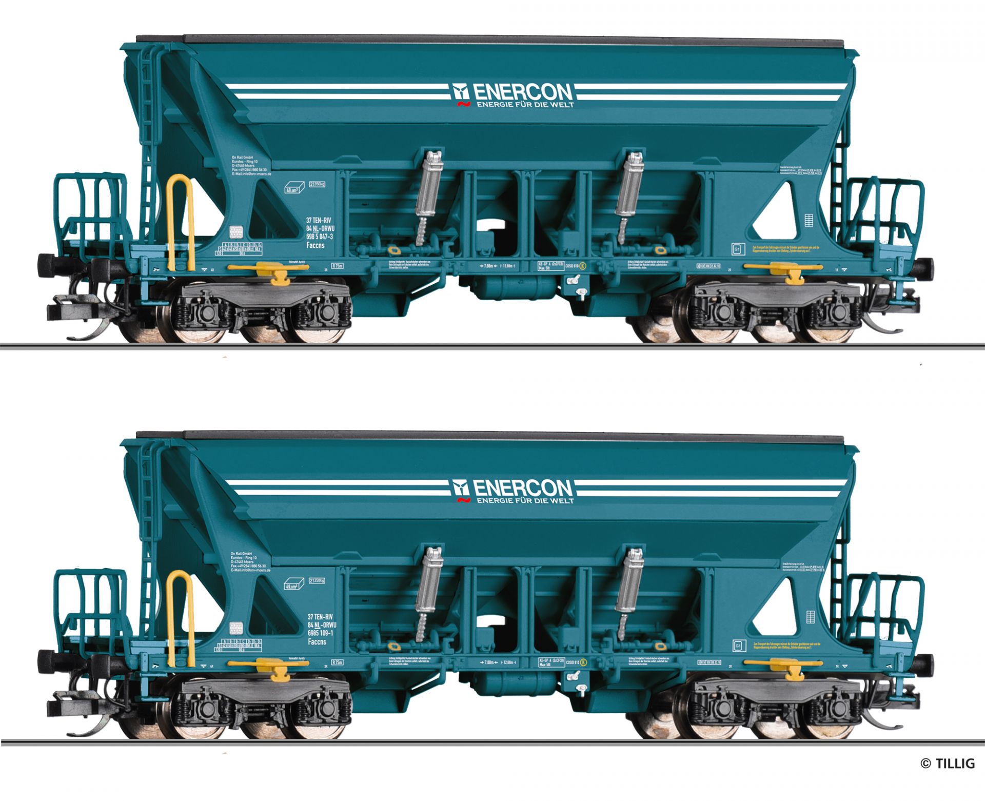 Güterwagenset der Enercon GmbH, bestehend aus zwei Selbstentladewagen Faccns