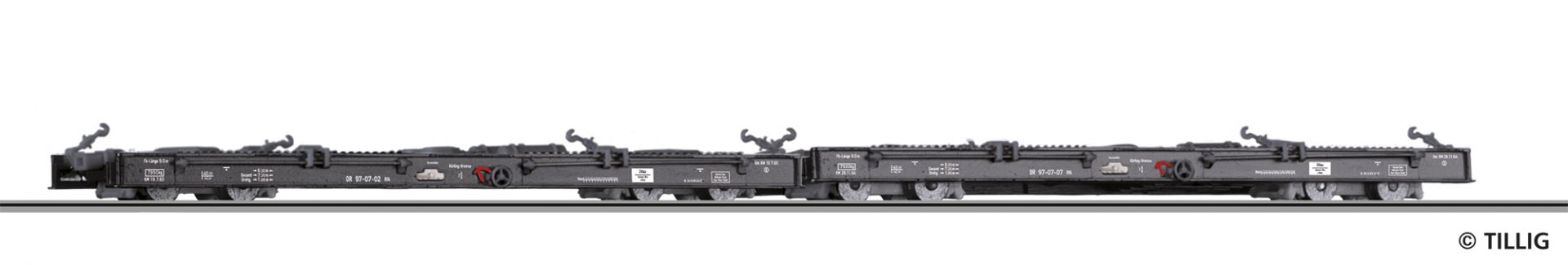 Güterwagenset der DR, bestehend aus zwei Schmalspur- Rollwagen Rf4