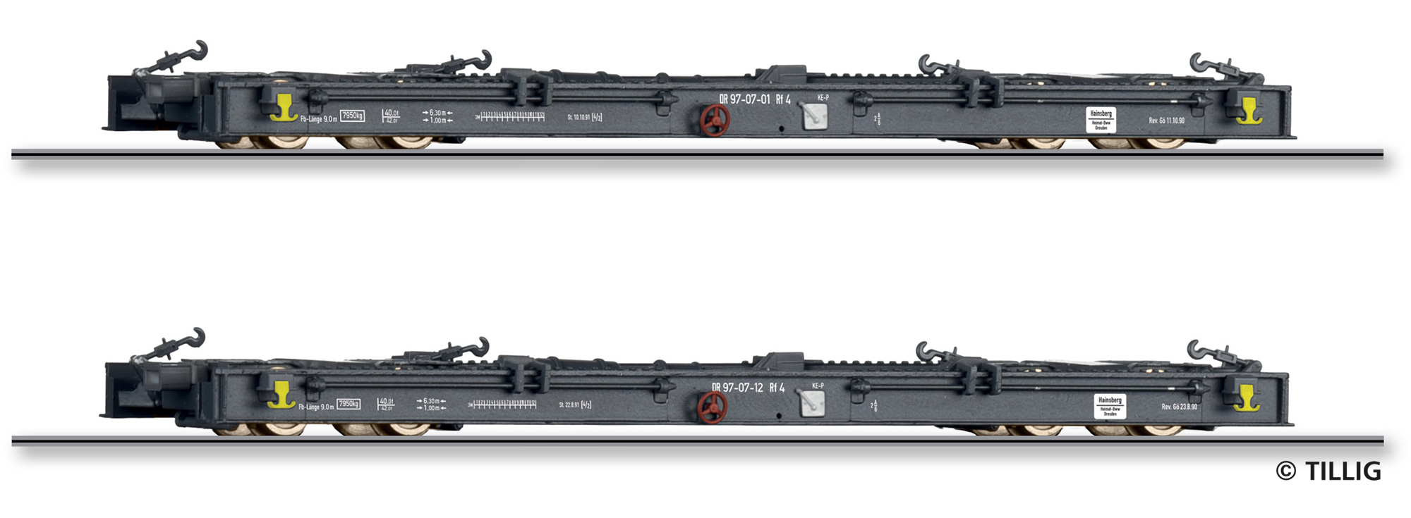 Güterwagenset der DR, bestehend aus zwei Schmalspur-Rollwagen Rf4