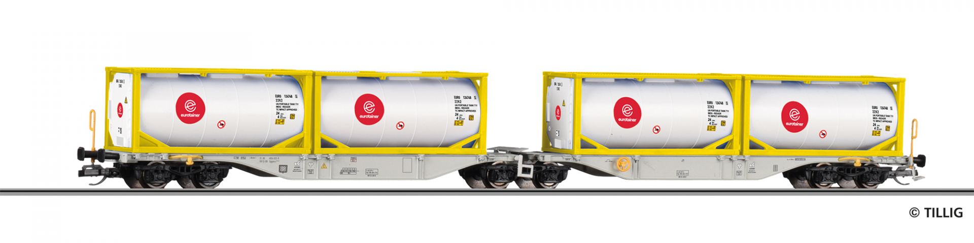 Containertragwagen Sggmrss 747 der DB AG, beladen mit vier Tankcontainern