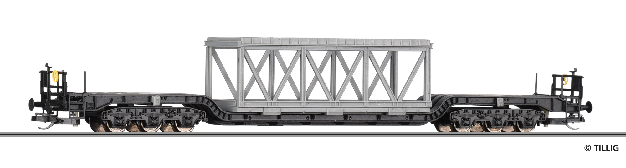 Tiefladewagen Uaai 9930 der DR, beladen mit Tragwerk