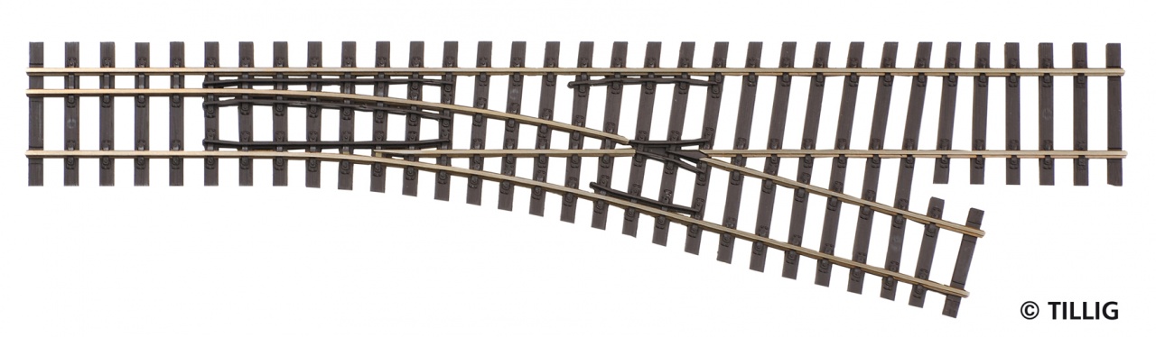Abzweig rechts H0-H0m, Abzweig 15°, Radius 363, Länge 228 mm