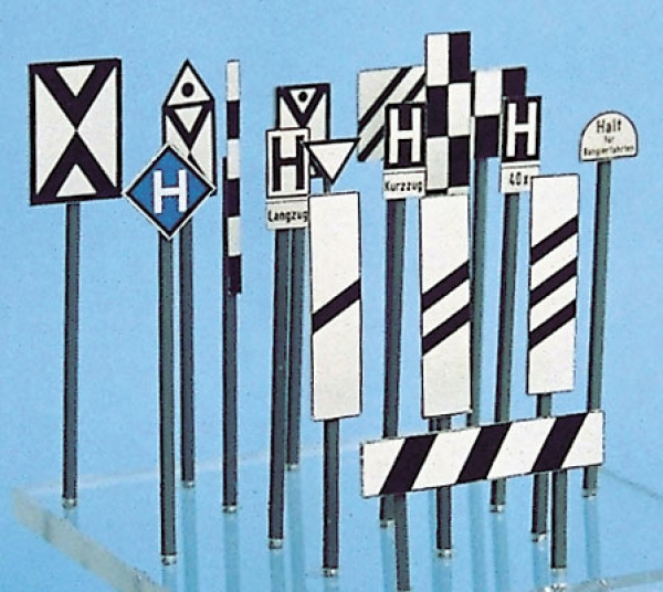 - Signaltafeln für Haupt- und Nebenbahnen DRG und DB, Kunststoffpfosten und bedruckte Pappe