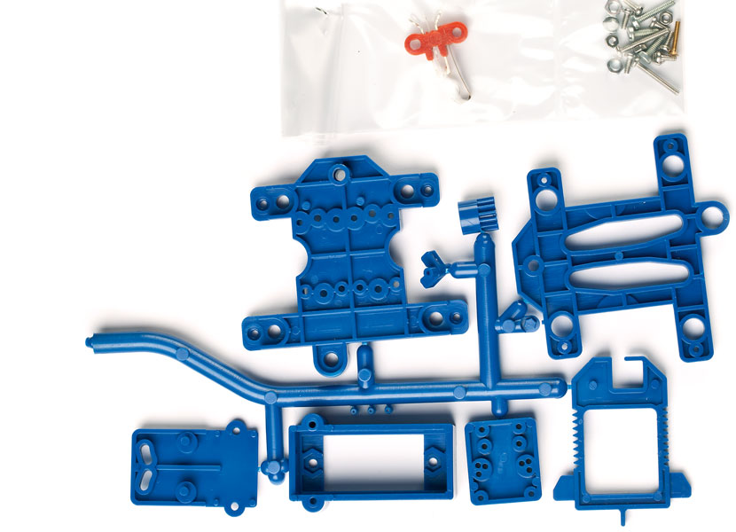 - Getriebe aus Kuststoffteilen, Schrauben und Muttern, Mikroschalter